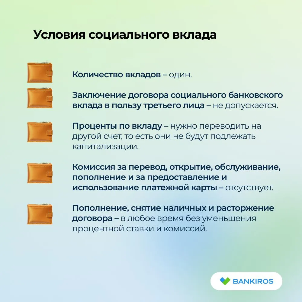 Согласно законопроекту, социальный вклад отличается от обычных вкладов в банках рядом условий.