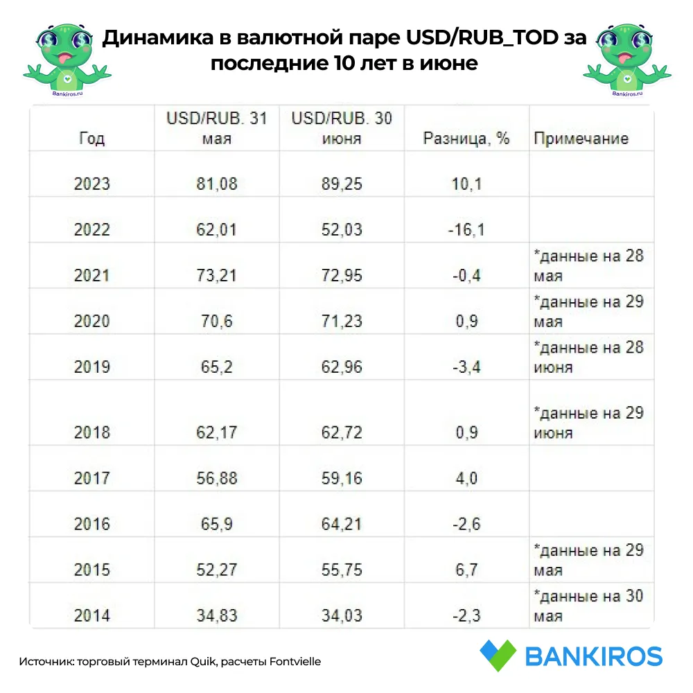 Чего ожидать от курса валют в июне? На этот вопрос на основе анализа движения рубля за последнее десятилетие ответил Bankiros.ru руководитель аналитического управления по глобальным рынкам ИК Fontvielle Артур Мейнхард.