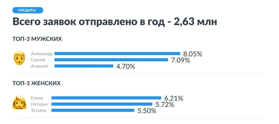 Этот материал будет интересен тем, кто хочет узнать – люди с какими именами чаще всего обращаются за кредитами и займами.