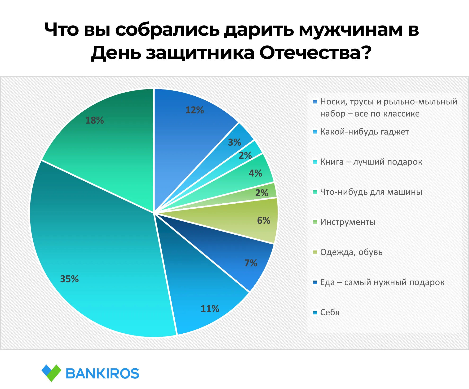 Треть граждан не собираются дарить подарки на День защитника Отечества. Что вполне логично, так как в предыдущем опросе почти та же часть опрошенных заявила, что не готова тратить деньги на презенты.