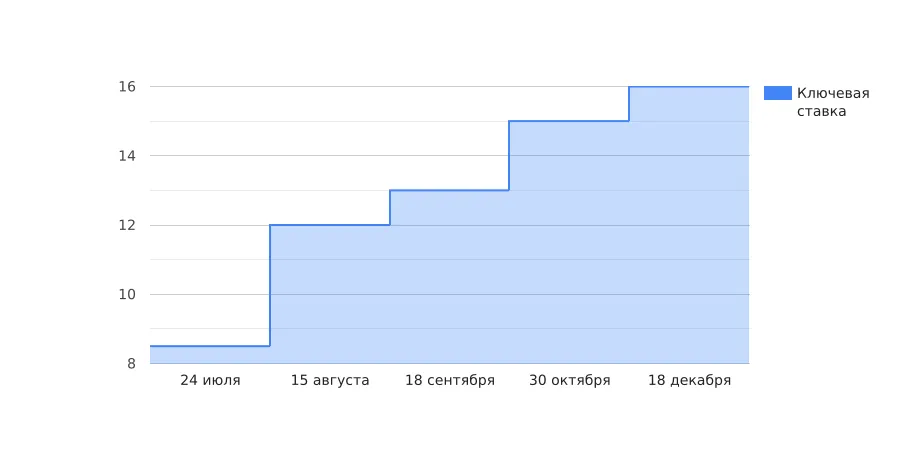 На заседании в декабре Центральный банк России принял решение о повышении ключевой ставки с 15 до 16%. Учетную ставку регулятор начал повышать в июле, ее поднимали последние пять заседаний. Из-за чего ставки по кредитам и вкладам во второй половине 2023 года заметно выросли. Причиной такой жесткой денежно-кредитной политики является инфляция.