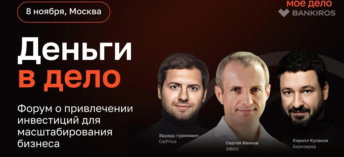 8 ноября 2023 г. приглашаем на форум для бизнесменов и инвесторов «Деньги в дело». Мероприятие пройдет в Цифровом деловом пространстве (Москва, ул. Покровка 47). Партнер конференции интернет бухгалтерия «Мое дело».