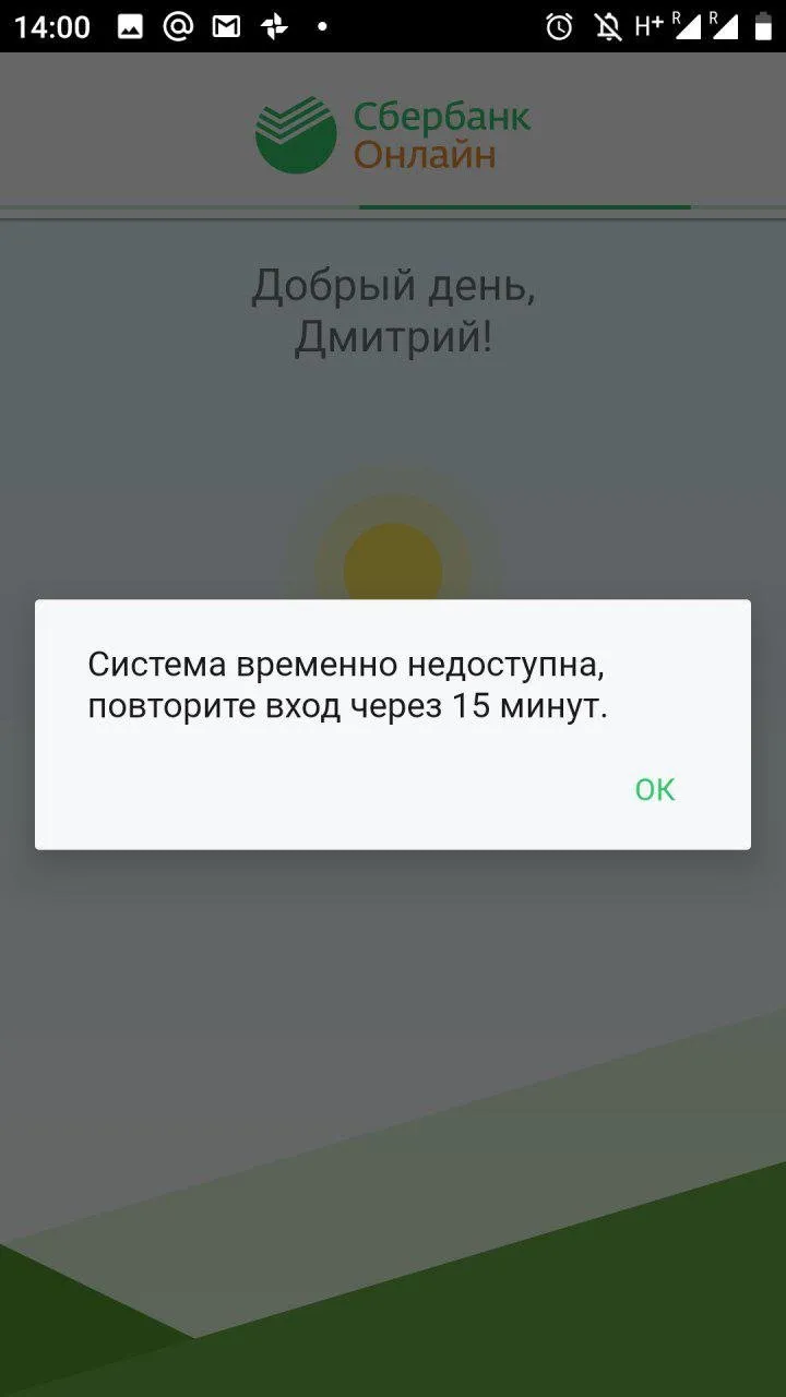 Однако к заявленному времени устранить неполадки не удалось. Наш журналист попытался войти в приложение «Сбербанк Онлайн» в 14:00 мск, но система выдала ошибку.