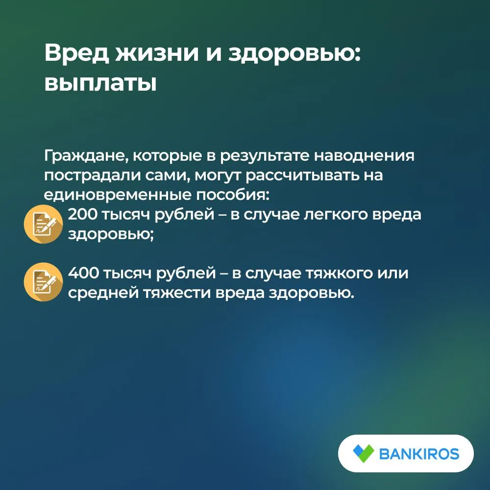 Выплаты пострадавшим от наводнения