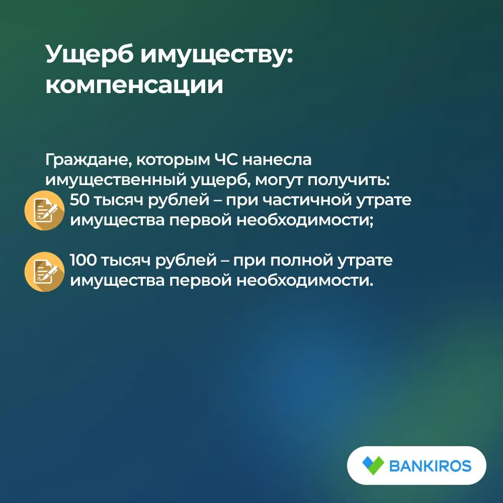 Граждане, которым ЧС нанесла имущественный ущерб, могут получить следующую компенсацию: