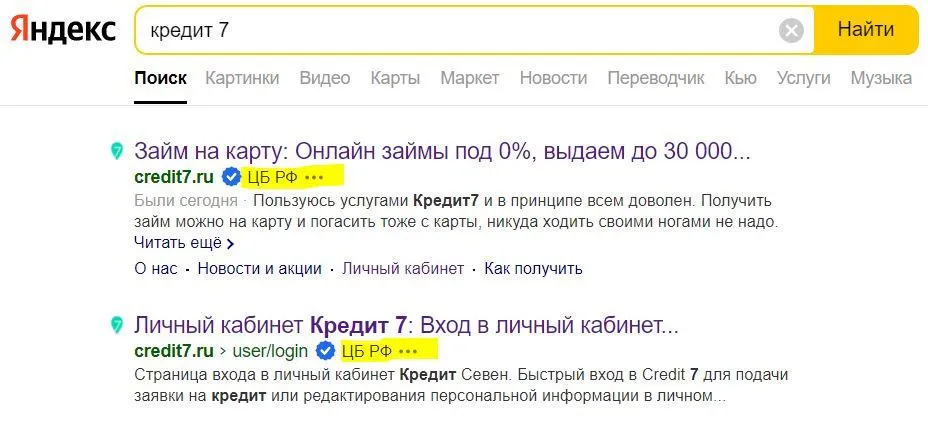 Самый первый и очевидный признак мошенников – отсутствие у них регистрации в государственном реестре финансовых организаций. Проверить наличие реестра очень просто: начнем с того, что честные микрофинансовые организации сами сообщают на сайте о наличии у них регистрации. Другой способ проверить это – просто «загуглить». А если еще точнее, «заяндексить». Легально работающие МФО и МКК будут помечены специальным синим значком с белой галочкой внутри – это уникальная маркировка, которая подтверждает законность деятельности компании.