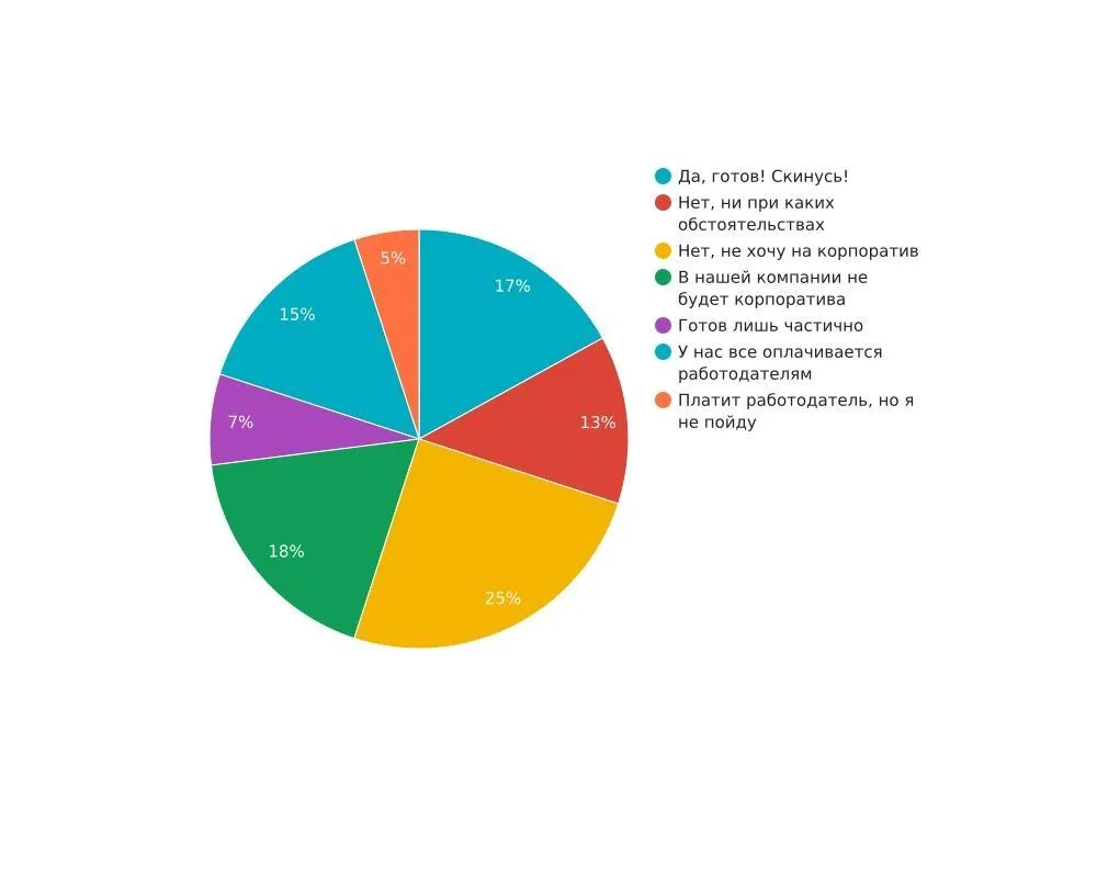 - 25% опрошенных не планируют идти на корпоратив, поэтому и скидываться не будут.
