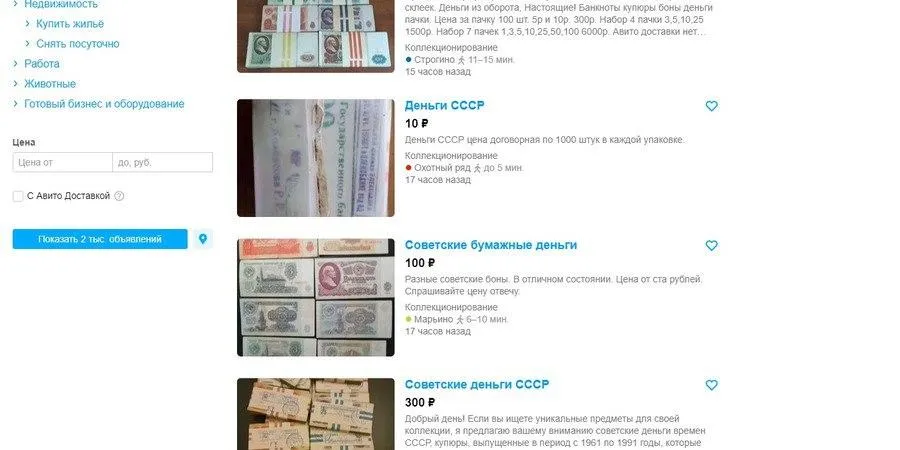Столько стоят советские купюры на «Авито»