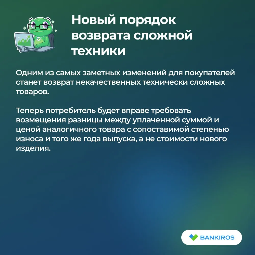Одним из самых заметных изменений для покупателей станет новый порядок возврата некачественных технически сложных товаров. С 1 февраля при таком возврате компенсация будет рассчитываться с учетом года выпуска товара и его износа.