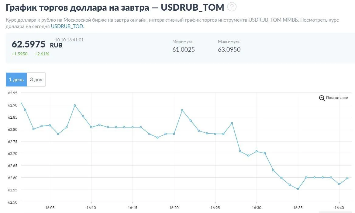 Рубль начал новую неделю с заметного ослабления к доллару. Открыв торги в понедельник с 61 рубля, доллар доходил до отметки 63 рубля, хотя затем отступил ниже 62 рублей.