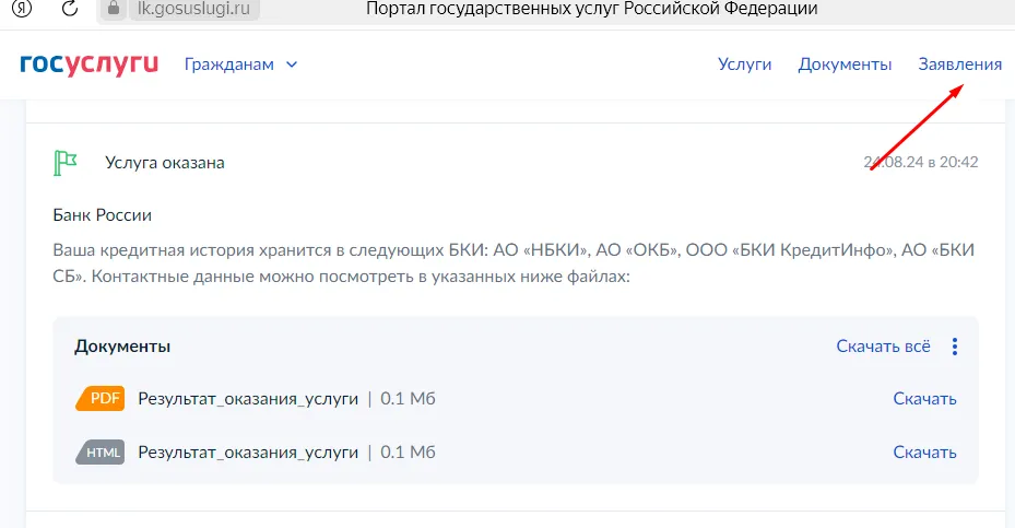 - Дождитесь обработки – посмотреть результат можно во вкладке «Заявления».