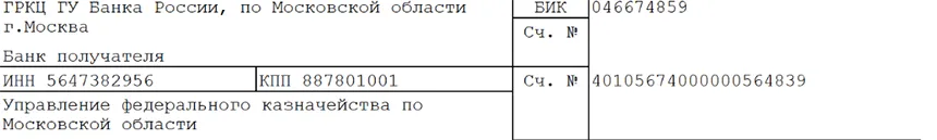- 15 – номер субсчета получателя, если адресат не обслуживается Банком России;