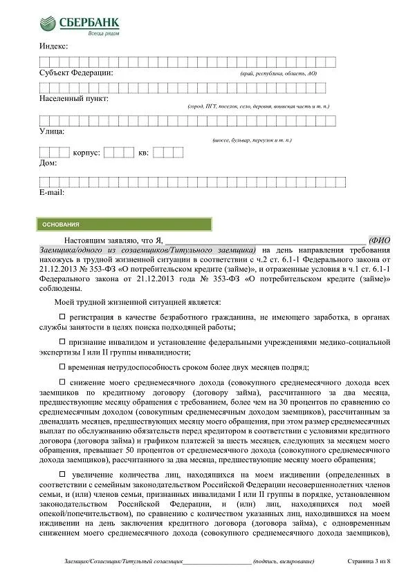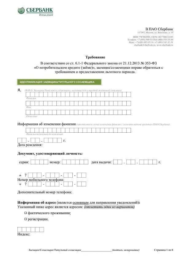 Заявление на ипотечные каникулы в банк выглядит примерно так: