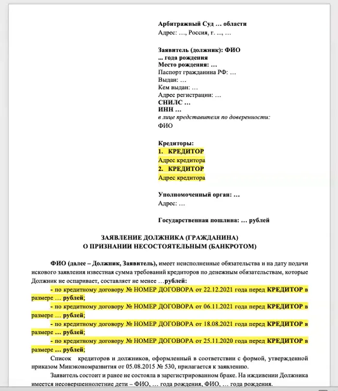 Как заполнить и подать заявление на банкротство?