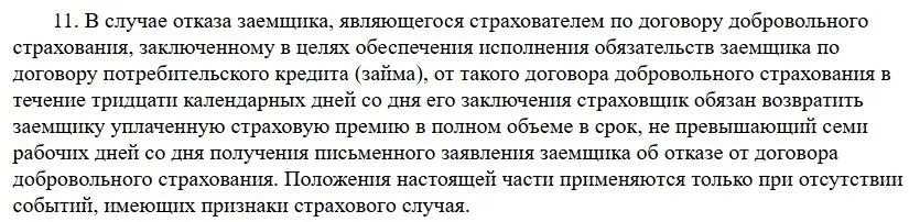 Обратите внимание, что при выплате кредита в срок или наступлении страхового случая возмещение не предусмотрено.