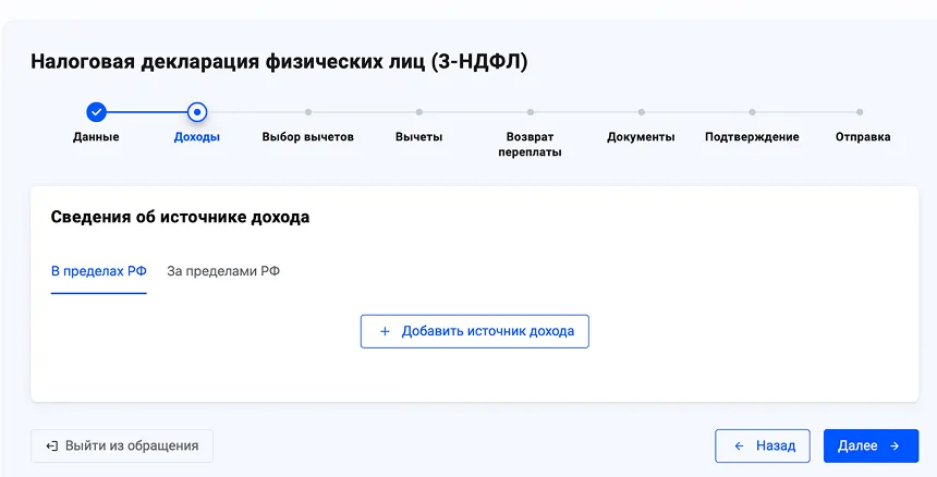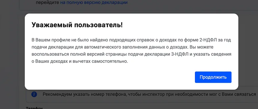 Поскольку в ЛК у Ивана нет сведений о зарплате, ФНС предлагает заполнить 3-НДФЛ самостоятельно.