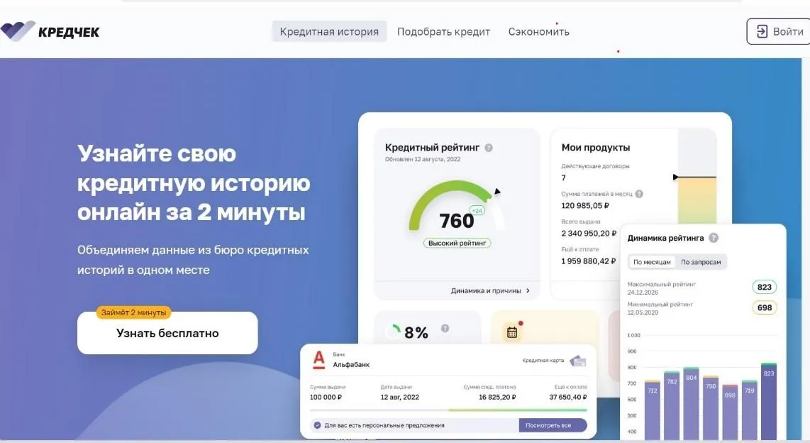 Проверить кредитную историю удобно, быстро и бесплатно вы можете с помощью сервиса КРЕДЧЕК.РФ.