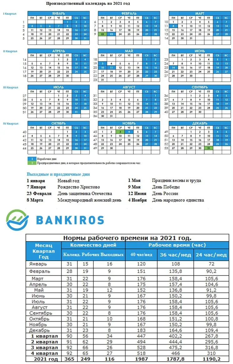 Производственный календарь в 2021 при пятидневной рабочей неделе