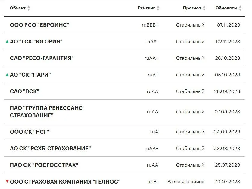 Основным типом рейтинга, к которому стоит прибегнуть в первую очередь, считается рейтинг страховых компаний ОСАГО по надежности. Наиболее авторитетный в этом смысле ТОП предлагает рейтинговое агентство «Эксперт Ра»: