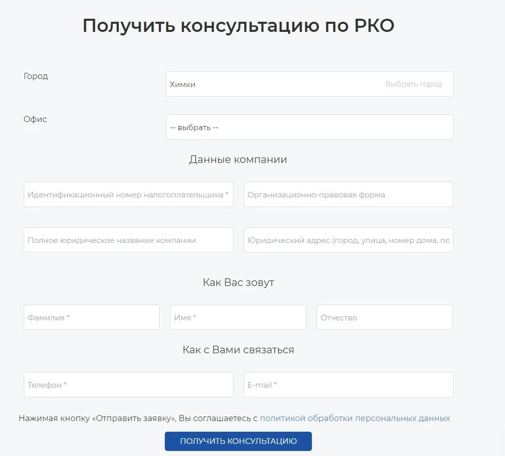 После этого система перенаправит пользователя на страницу ББР банка, где можно заполнить анкету на открытие.