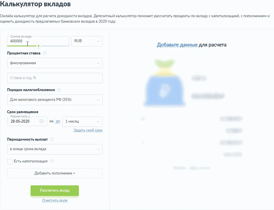 - Проверьте введенную информацию и кликните «Рассчитать вклад».