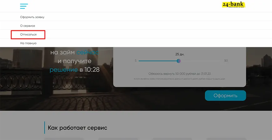 Есть несколько способов отписаться от платных подписок по займам от компании 24-банк. Рекомендуем использовать сразу несколько вариантов, а потом проверить, выключен ли сервис.