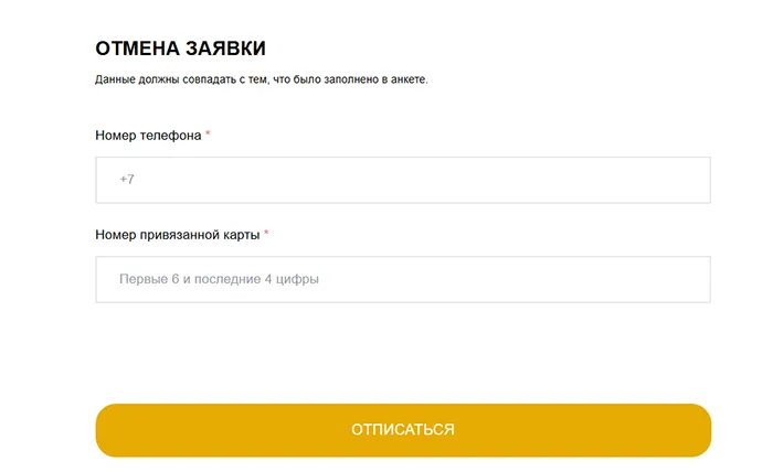 Для отказа от услуги 3zaem необходимо открыть форму на сайте по ссылке https://3zaem.ru/unsubscribe. Далее заполнить поля, указав номер телефона и данные привязанной карты. Чтобы отписаться от подписок 3заем, следует нажать на одноименную кнопку и ориентироваться на подсказки системы.
