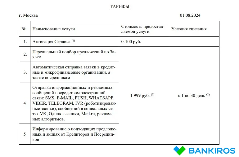 На платформе опубликованы документы, содержащие подробную информацию об условиях сотрудничества с информационным посредником. При составлении анкеты на займ пользователь должен одобрить пункты абонентского соглашения и применение рекуррентных платежей. После получения согласия платформа обязуется обеспечить доступ к услугам в течение 1 рабочего дня, предоставляя следующие возможности: