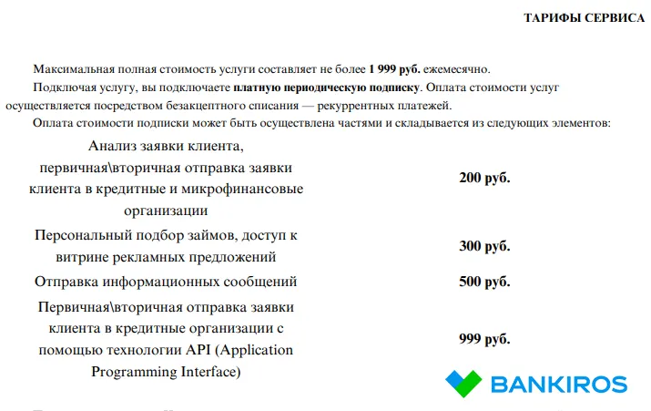 Максимальная сумма ежемесячной оплаты составляет 1999 рублей. Активация подразумевает подключение регулярной опции, расчет за которую производится автоматически путем безакцептного снятия средств — рекуррентных платежей. Стоимость подписки состоит из нескольких компонентов с разной ценой, но не может превышать указанный лимит. Если не отписаться от платных услуг Кредима, то договор между пользователем и платформой будет продлеваться каждый месяц.