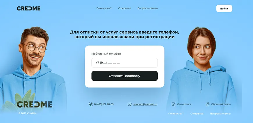 Фирма CredMe не занимается выдачей микрозаймов, а предлагает услуги по подбору предложений от МФО-партнеров. Компания не несет обязательств по заключенным договорам и не гарантирует одобрение заявки. Вы можете отписаться от платных услуг и подписок CredMe на официальном сайте или иными способами, рассмотренными в статье.