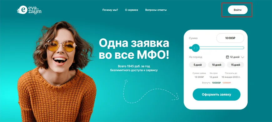• перейти на официальный сайт посредника по ссылке https://evazaym.ru/ или воспользоваться поиском в браузере;