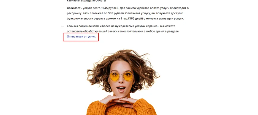 Также отписаться от платных подписок ЕваЗайм.ру можно без входа в учетную запись. Как это сделать: