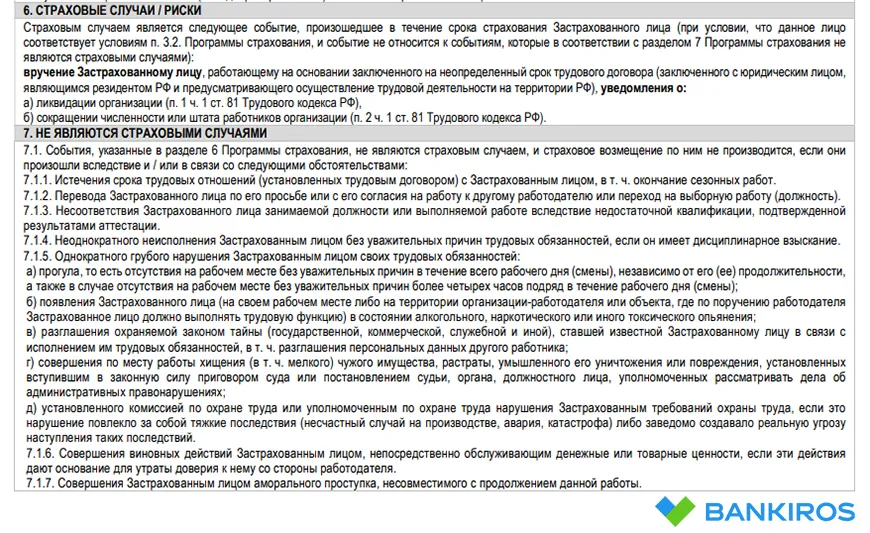 После заключения договора и перечисления средств пользователь становится клиентом страховой компании. При наступлении рисков, утвержденных договором, он имеет право на получение выплаты. Основанием для последней выступает потеря работы, связанная с ликвидацией организации или сокращением штата. Увольнение по собственному желанию или из-за дисциплинарного взыскания не являются причиной для получения компенсации. Сумма страховой выплаты определяется индивидуально после оценки анкеты физического лица на моменте заключения договора.