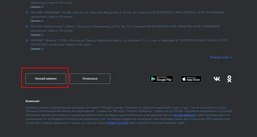 Вы можете отписаться от сервиса Вам одобрено через личный кабинет. Для входа в персональный профиль нужно зайти на официальный сайт информационного портала с помощью поиска браузера или по прямой ссылке https://glav-zaim.ru.