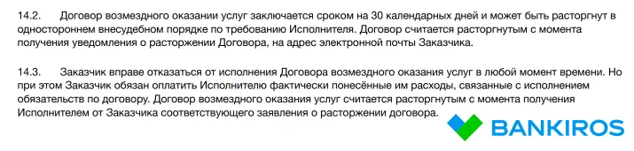 По написанной и отправленной на электронный адрес претензии больше шансов получить положительное решение, если отправить ее в течение одного рабочего дня с момента оплаты услуг. В оферте указано, что договор расторгается с момента получения от заказчика соответствующего обращения, но при этом стороны должны выполнить взятые на себя обязательства.
