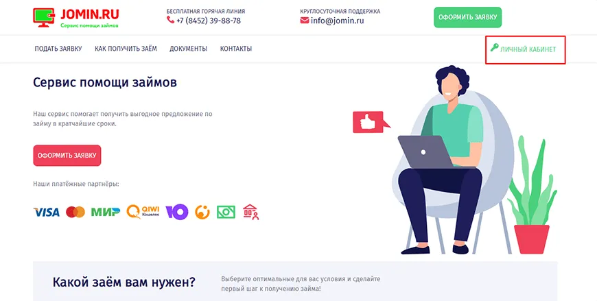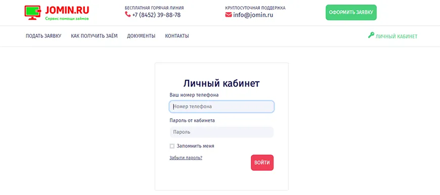 Отказаться от сервиса можно через личный кабинет на официальном сайте. Найдите веб-страницу через поисковик или кликните по ссылке https://jomin.ru/. Далее: