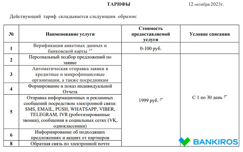 Сервис подбора займов предлагает клиентам широкий перечень услуг, оказание которых происходит только в случае подключения платной подписки. К таким услугам относятся: