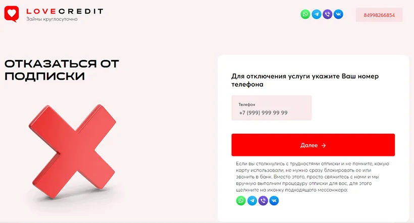 Как отписаться от подписок и платных услуг Love Credit?
