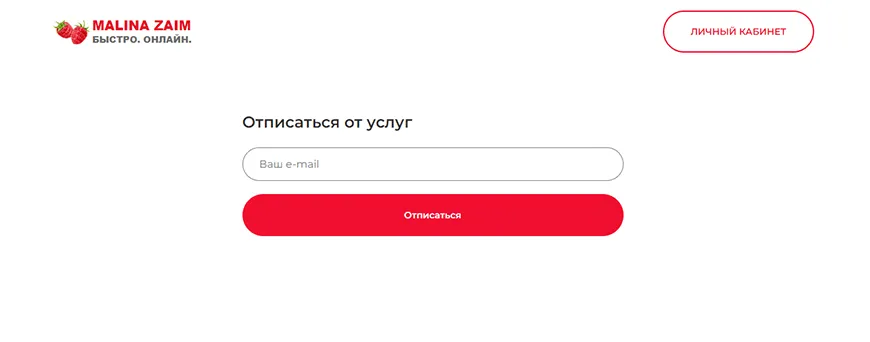 На официальном сайте посредника можно отказаться от сервиса. Для этого следует зайти на веб-страницу по ссылке https://malinazaim.ru/ или через поисковую систему.