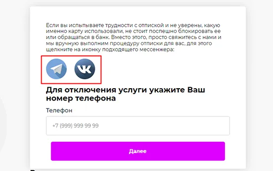 При наличии сомнений касаемо карты, используемой при регистрации, не обязательно сразу обращаться в банк и блокировать ее. Вместо этого следует связаться со службой поддержки через Telegram или VK, чтобы сотрудники произвели отписку в ручном режиме.