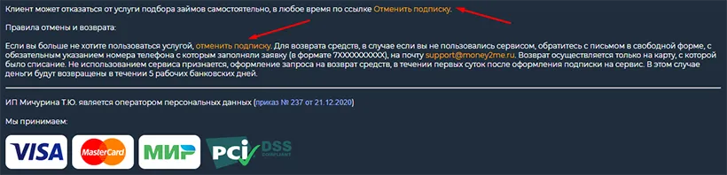 Как отписаться от подписок и платных услуг Money2Me