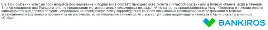 Брокер предоставляет доступ к микрокредитным программам от своих партнеров. Согласно условиям оферты, компания не несет никаких обязательств перед заемщиками по кредитным договорам. Ресурс вправе вносить изменения в тарифы в одностороннем порядке, не уведомляя об этом текущих пользователей и не согласовывая с ними эти изменения. Он отвечает за обработку и сохранность персональных данных, а его возможности сводятся к:
