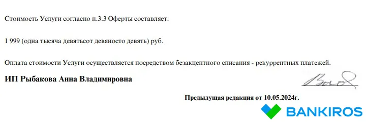 За каждый месяц использования подписки клиент оплачивает 1999 рублей. Списание средств осуществляется долями, чаще ежедневно. Платформа применяет рекуррентные платежи, поэтому не оповещает о будущей транзакции по смс.