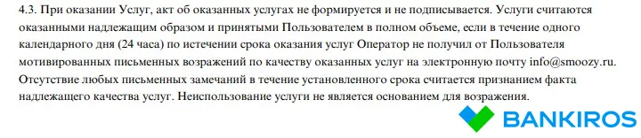 Если не отписаться, Smoozy может отправлять рекламные сообщения самостоятельно или передавать пользовательские данные третьим лицам. Уведомления о текущих предложениях поступают в формате смс и электронных писем.