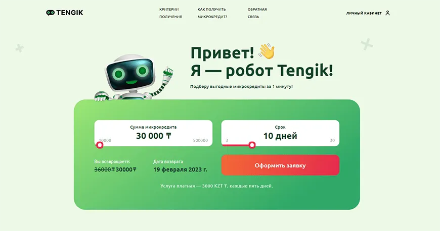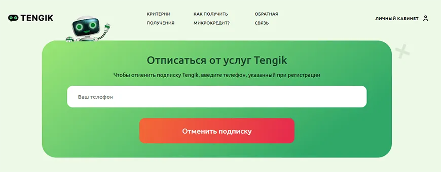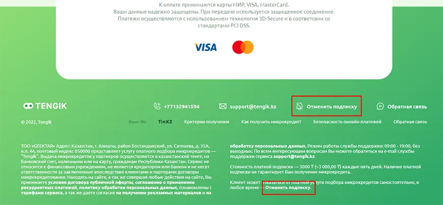 Робот Тенгик – это не финансовая организация, а информационный ресурс. На сайте размещен функционал для подачи заявки в партнерские МФО. Рассмотрим, как отписаться от платных услуг Freedom Pay Tengik.