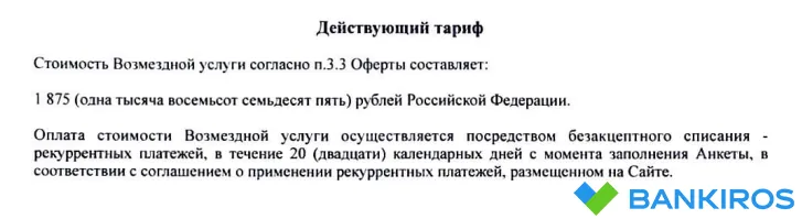 За использование услуг посредника придется заплатить 1875 рублей. Средства будут удержаны посредством рекуррентных (не требующих согласования со стороны владельца карты) платежей в течение 20 дней. Каждые 5 дней сервис будет списывать по 375 рублей. Доступ к функционалу предоставляется на год.