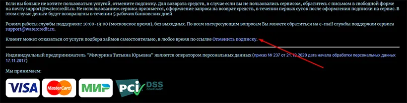 Публичная оферта предполагает один вариант отказа от использования сервиса. Отписаться от подписок Water Credit можно на официальном сайте системы. Однако в ряде случаев требуется дополнительно связаться с информационным посредником. Отказаться от сервиса не всегда получается сразу.
