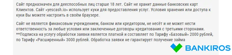 YesCash – информационный посредник, поэтому он не выступает стороной кредитного договора и не может отвечать за предложенные условия опции. По данным публичной оферты факт заключения договора с платформой не отражается на шансах выдачи займа.
