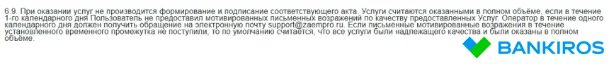 Компания работает с ограниченным списком МФО и не является полноценным агрегатором. Несмотря на то, что платформа предоставляет общую информацию об условиях займа, окончательные решения принимаются конкретным кредитором. Условия могут отличаться от тех, что были предложены изначально. За обработку заявки придется платить вне зависимости от полученного ответа. Пользователь должен самостоятельно отписаться от услуг по займам на Zaempro.ru, если хочет остановить регулярные расходные операции и отказаться от получения рекламных уведомлений.