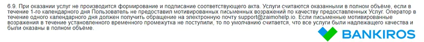 • support@zaimohelp.io – электронный адрес для отправки обращений и претензий.